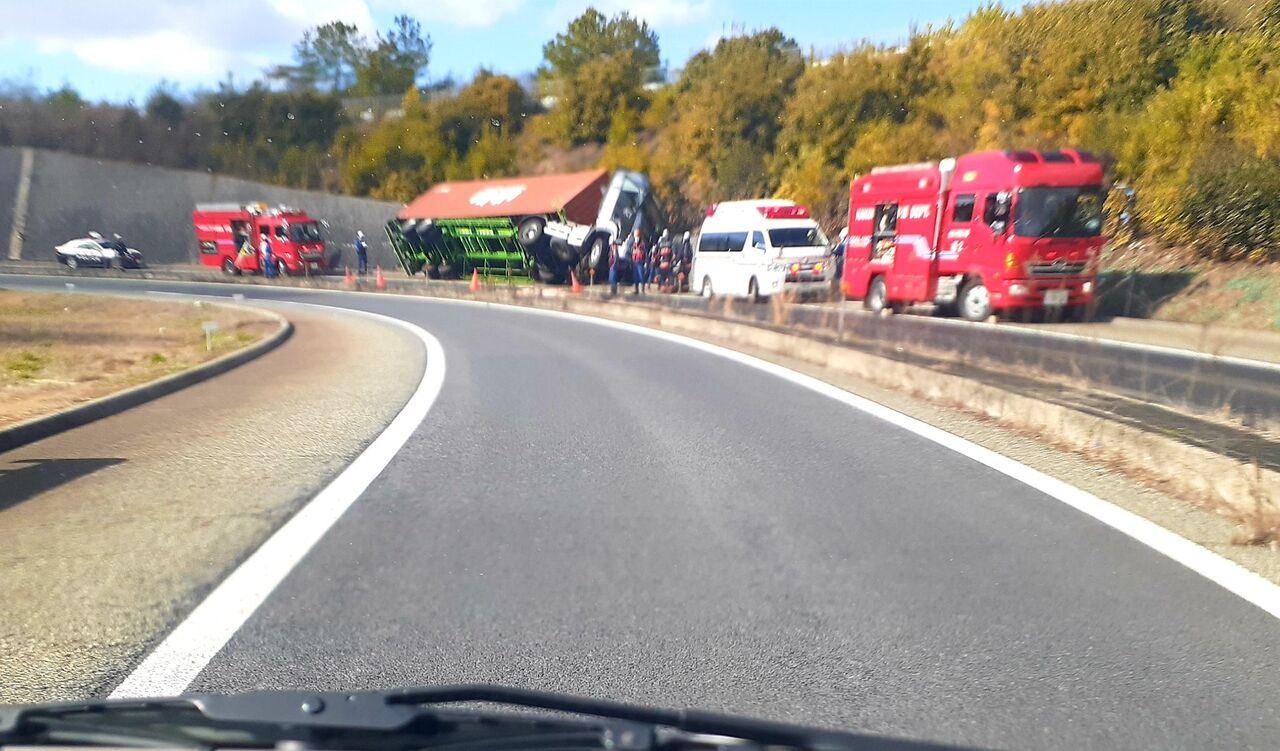 トレーラー横転してました、