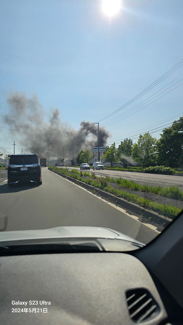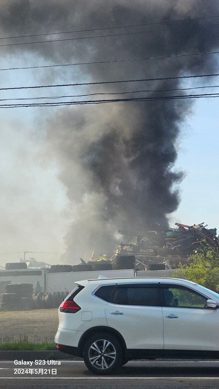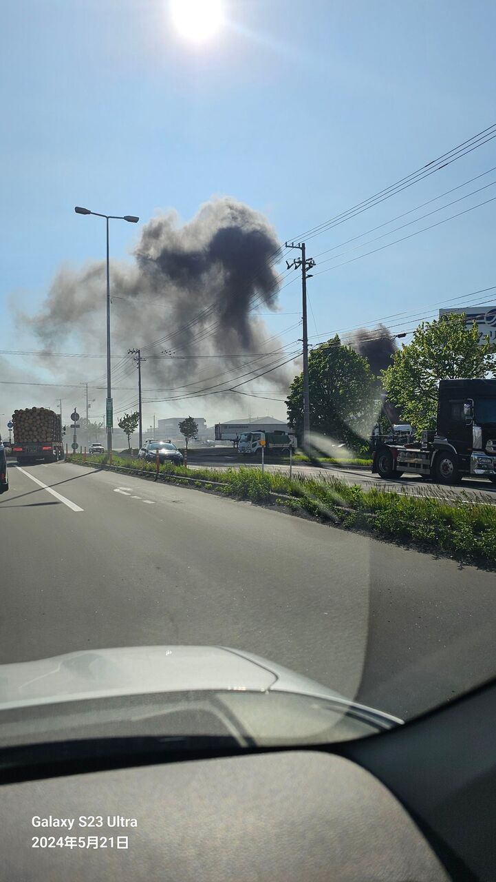 【火事情報】北海道苫小牧市あけぼの町3丁目 環状線沿い廃材置き場ヤード付近から黒煙あがる火災5月21日 #北海道 #苫小牧 #火災