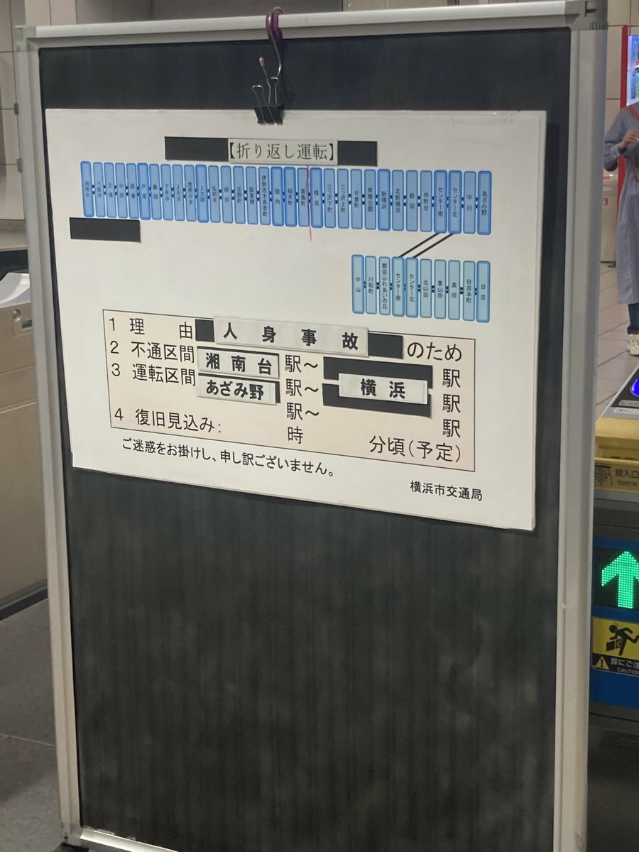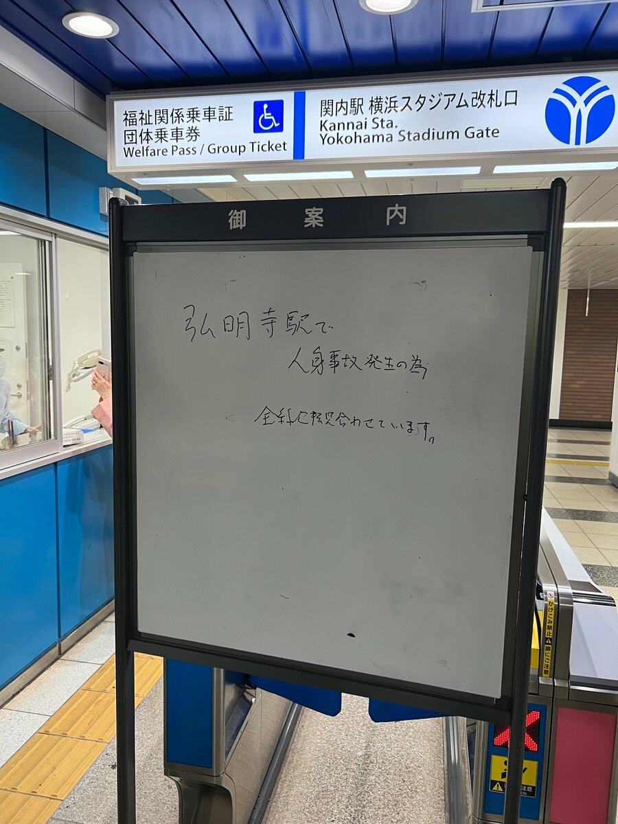 横浜市営地下鉄ブルーライン、湘南台―横浜駅間で運転見合わせ…弘明寺駅で人身事故https://t.co/JUEdFYXHkk#ニュース