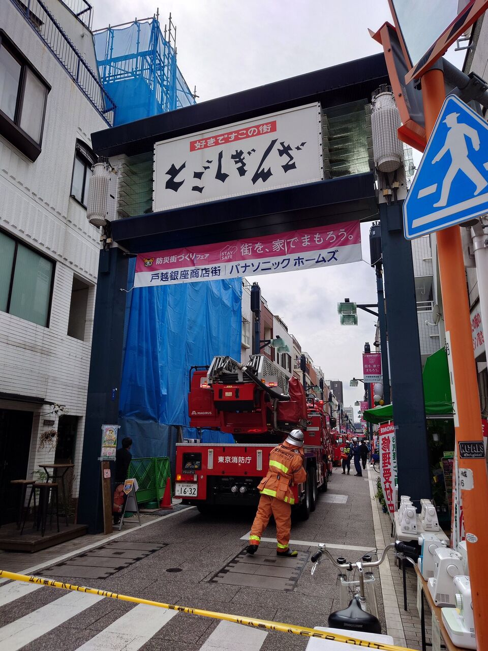 戸越銀座は火事で歩行者も通れない🚒