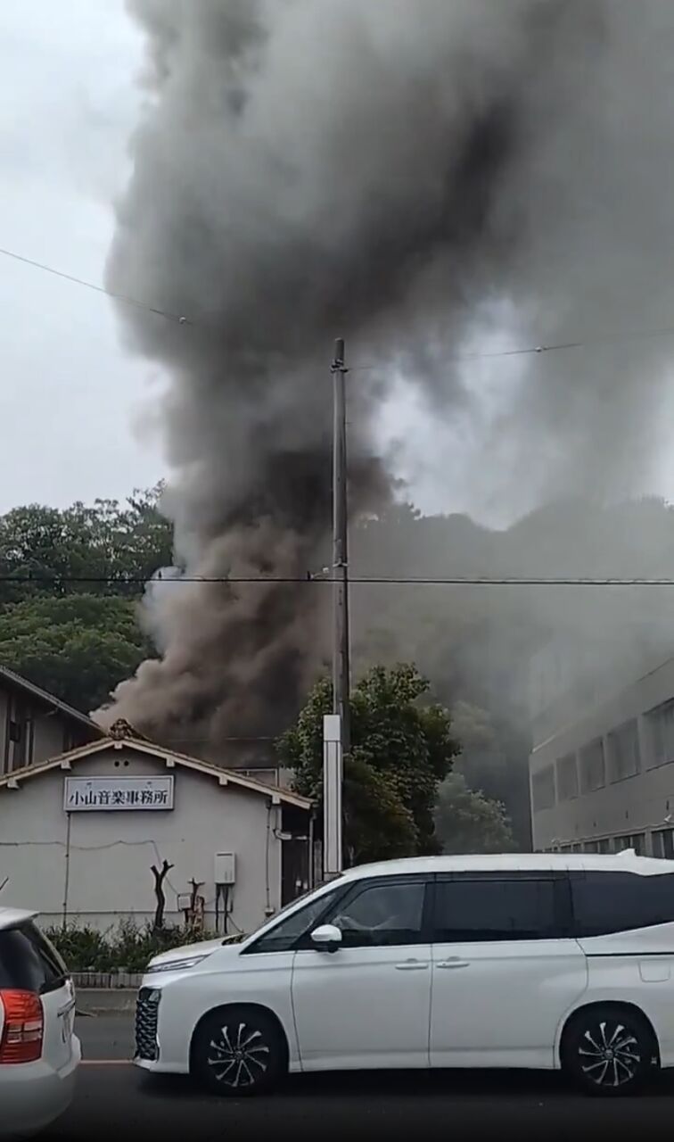 【火事情報】香川県観音寺市八幡町1丁目 スーパーマルナカ観音寺八幡店南側付近 建物から黒煙あがる火災5月24日 #香川 #観音寺市 #火災