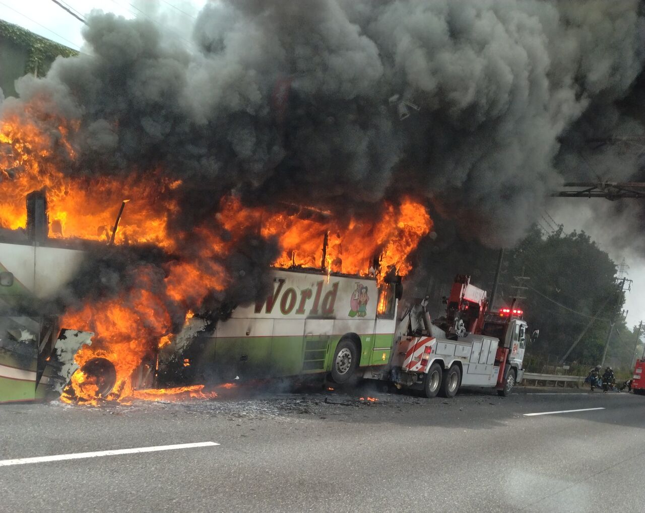 『姫路バイパス上り。バス炎上中』