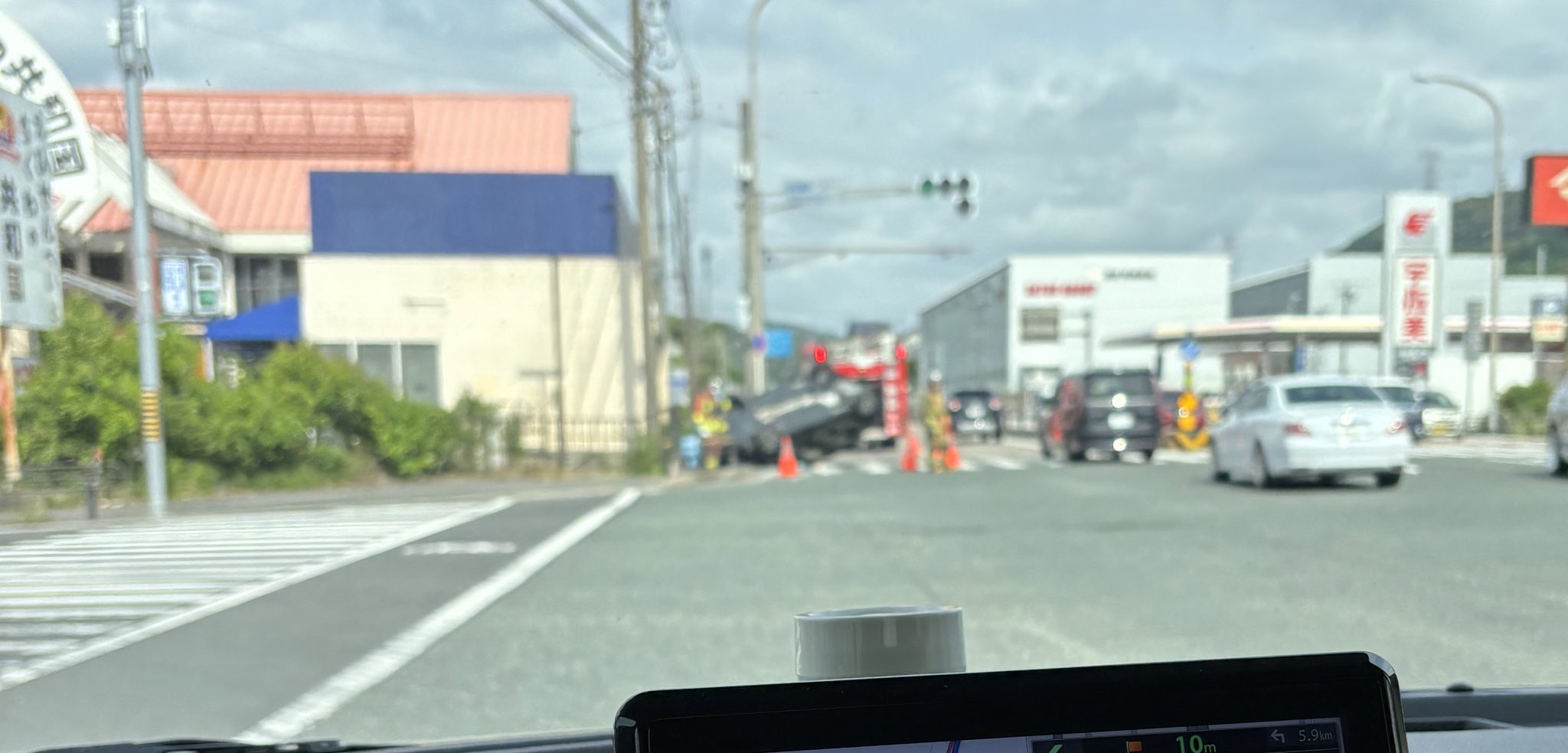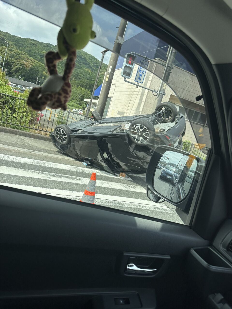 『音羽蒲郡インターのとこの交差点で車ひっくり返ってたんやけど