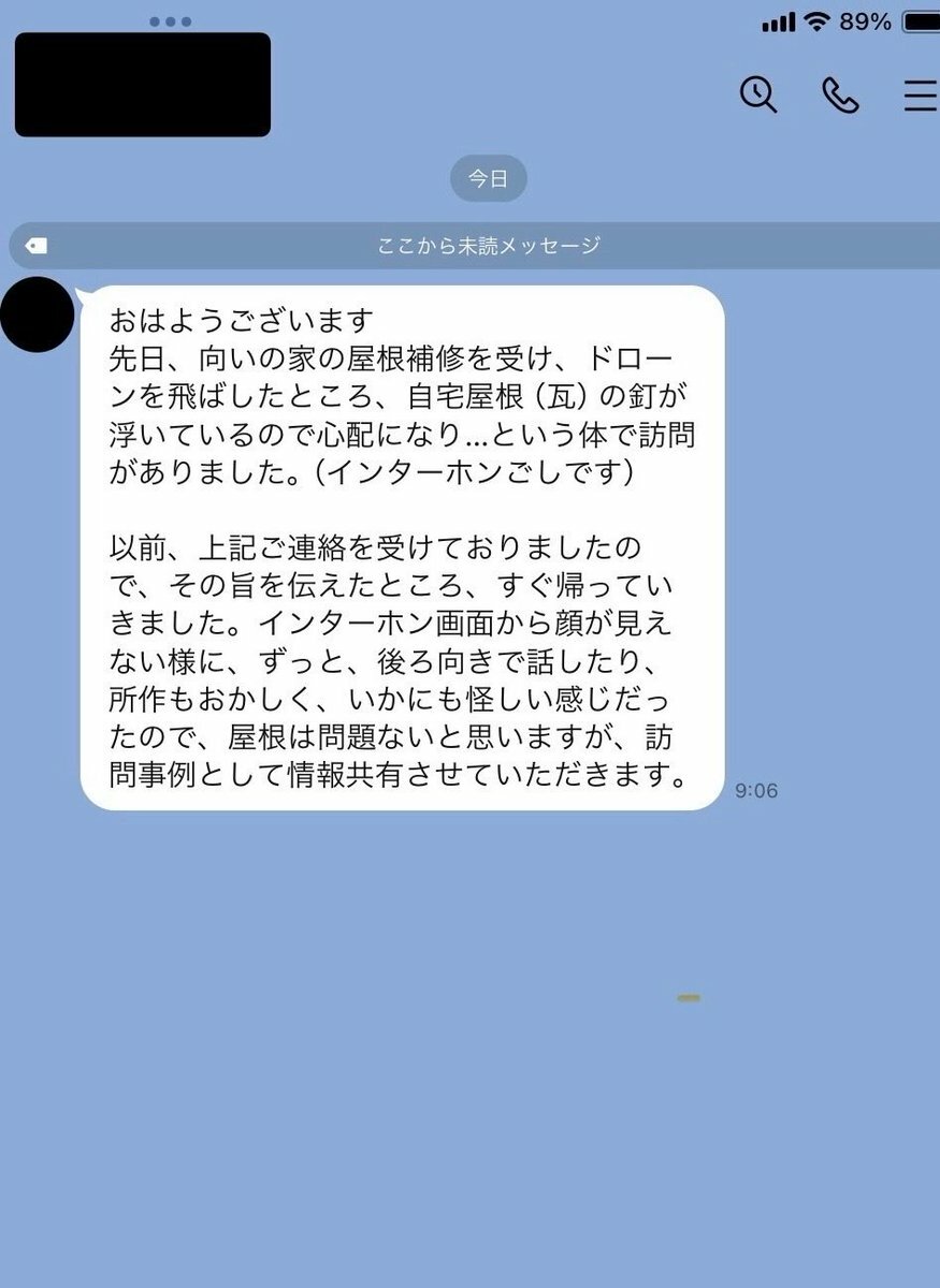 荷物来たかと思ったら屋根の瓦がズレてる詐欺訪問だったから、いい加減にしろ