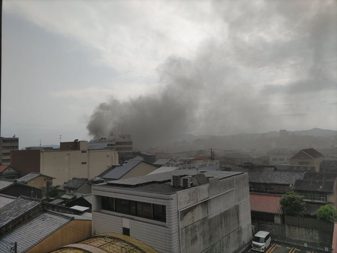 上京区で火事起きてた ちょうど横通ってバス煙臭い pic.twitter.com/SYC9lax7Xe