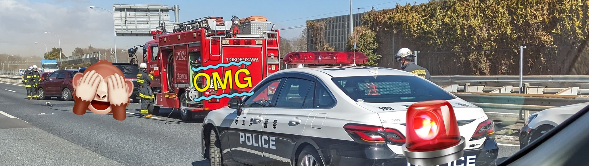 関越自動車道、追い越し車線で4台玉突き事故って見たんだけどまじ🫠