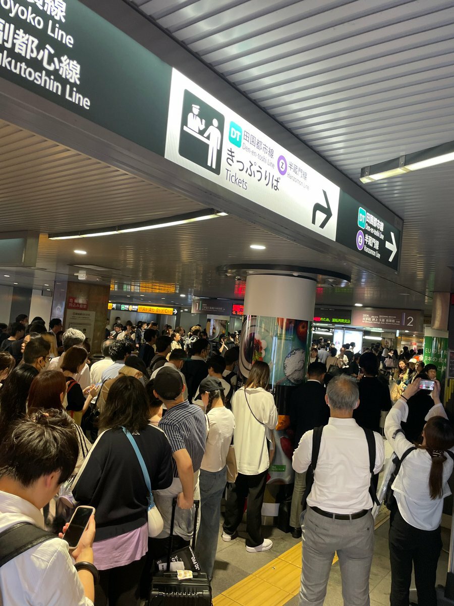 半蔵門線で渋谷駅ついた瞬間に バン!!ってデカい音鳴って停電した。これ、多分復旧に時間かかるんじゃない?危機一髪で違う路線に乗れた。巻き込まれちゃった人、頑張って。