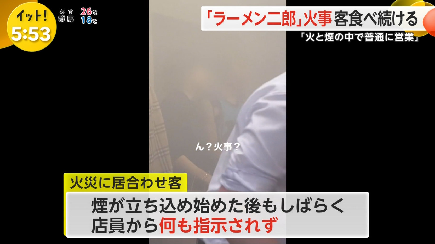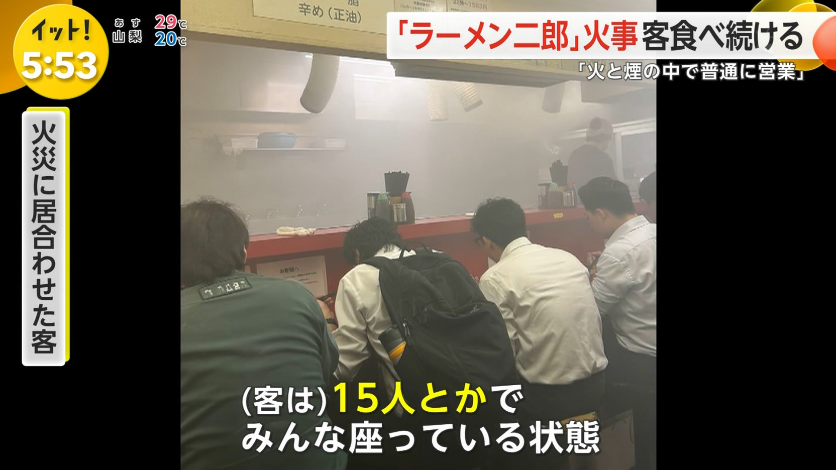 【感動】ラーメン二郎歌舞伎町店で火災が起きるも誰一人として逃げず煙が充満する店内で客はラーメンを食べ続けた 2024/5/28 速報 1: 訓練されたブタ document.write(” + ”); 関連記事 document.write(” + ”); 続きを読む ——— Source: アルファルファモザイク 【感動】ラーメン二郎歌舞伎町店で火災が起きるも誰一人として逃げず煙が充満する店内で客はラーメンを食べ続けた