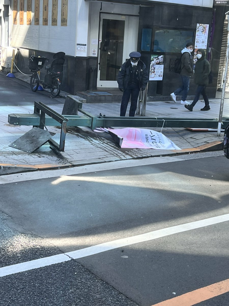 【現場の様子】#注意喚起 東京都渋谷区円山町 道玄坂の街灯が根本から折れる事故2月27日 #渋谷 #円山町 #道玄坂 #強風