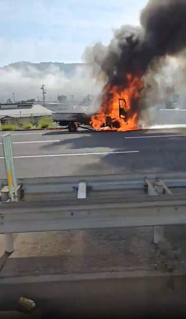 【現場の様子】#交通情報 #長野道 上り 安曇野IC→松本IC付近 トラック燃える車両火災事故で一時通行止め渋滞5月30日 #渋滞 #長野 #火災
