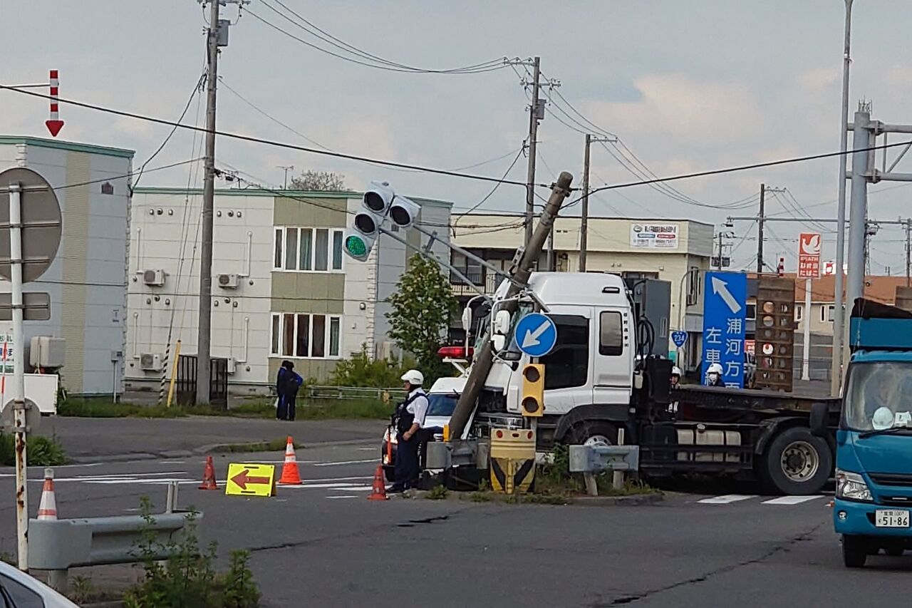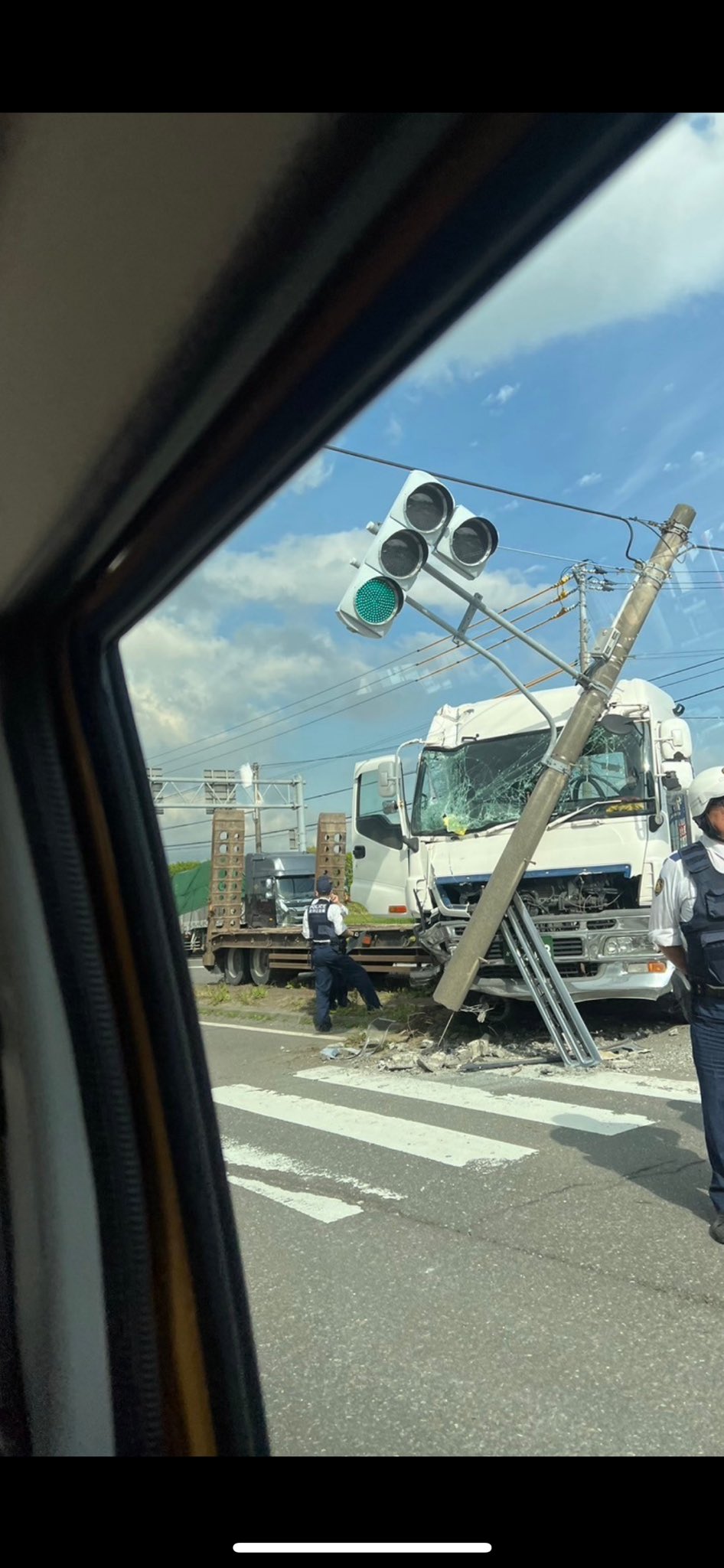 【現場の様子】#交通情報 #国道234号 セブンイレブン苫小牧沼ノ端東店付近交差点 信号機破壊する大型トレーラー追突事故で規制渋滞5月30日 #渋滞 #北海道 #苫小牧