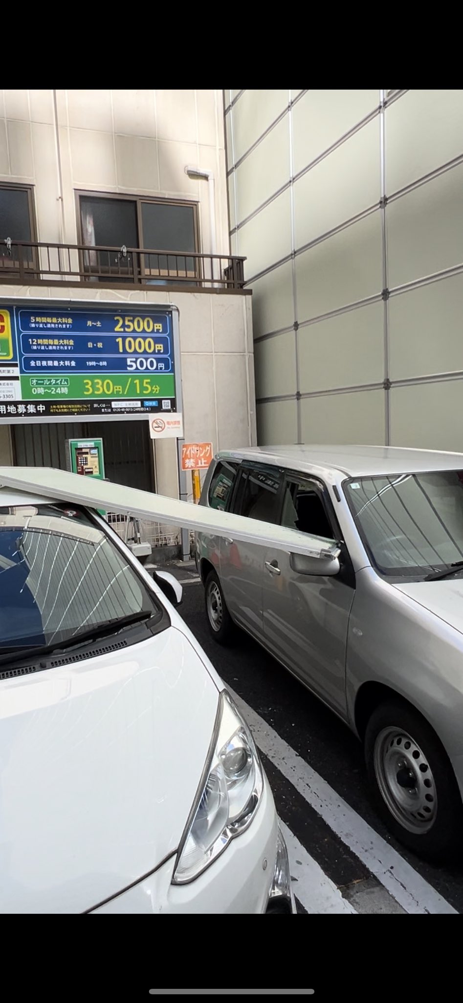 【現場の様子】#注意喚起 東京都中央区日本橋 #横須賀線 馬喰町駅付近 工事現場のパネルが駐車場に落下事故2月27日 #馬喰町 #日本橋 #強風