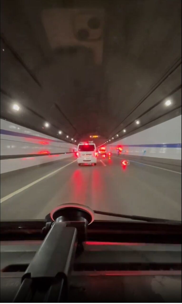 【現場の様子】#交通情報 #東京湾アクアライン 上り 海ほたるPA~川崎浮島JCT付近 トラックがトンネル内壁に接触事故で規制渋滞6月4日 #渋滞 #アクアライン