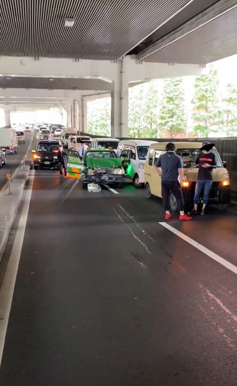『六本木通り(渋谷方面行き)タクシーが追突したてっぽかったので稼働中の方気をつけて‼️』