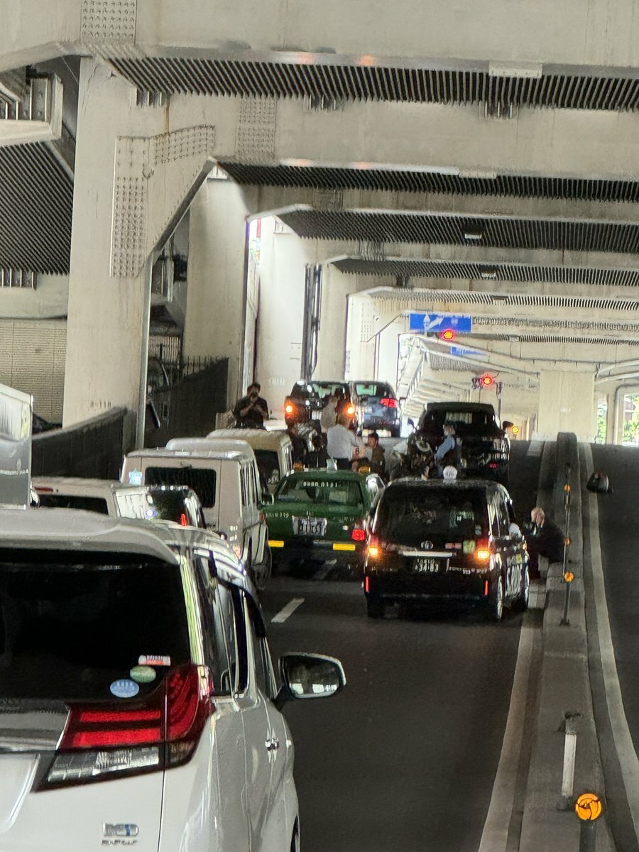 【現場の様子】#交通情報 六本木通り 東京都港区西麻布4丁目 首都高高樹町出入口付近 普通自動車タクシーやバイクなど複数台絡む衝突事故で規制渋滞6月4日 #渋滞 #港区 #六本木 #西麻布