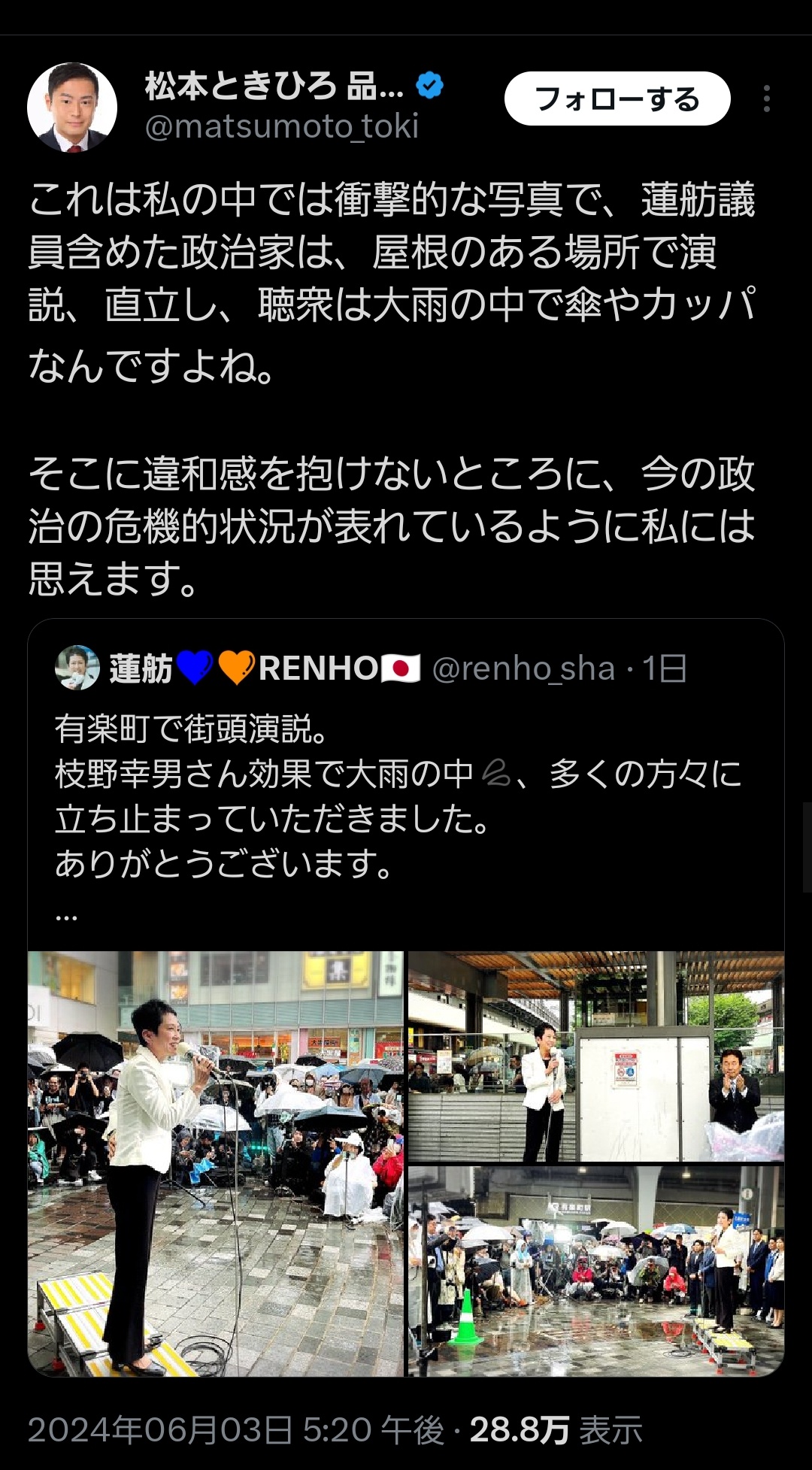 【悲報】蓮舫さん、たった1枚の写真で終わる 2024/6/4 速報 1: — (@matsumoto_toki) document.write(” + ”); 関連記事 document.write(” + ”); 続きを読む ——— Source: アルファルファモザイク 【悲報】蓮舫さん、たった1枚の写真で終わる