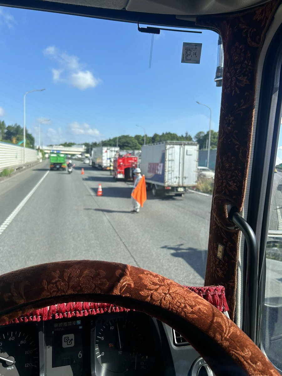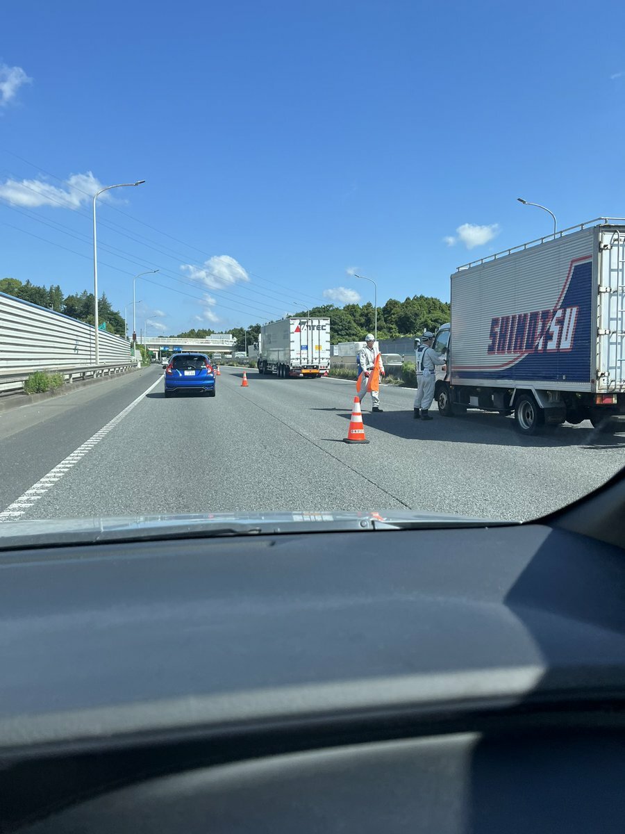 【現場の様子】#交通情報 #保土ヶ谷バイパス 下り 神奈川県横浜市旭区下川井IC付近 2車線塞ぐトラック事故で規制渋滞6月5日 #渋滞 #横浜 #保土ヶ谷