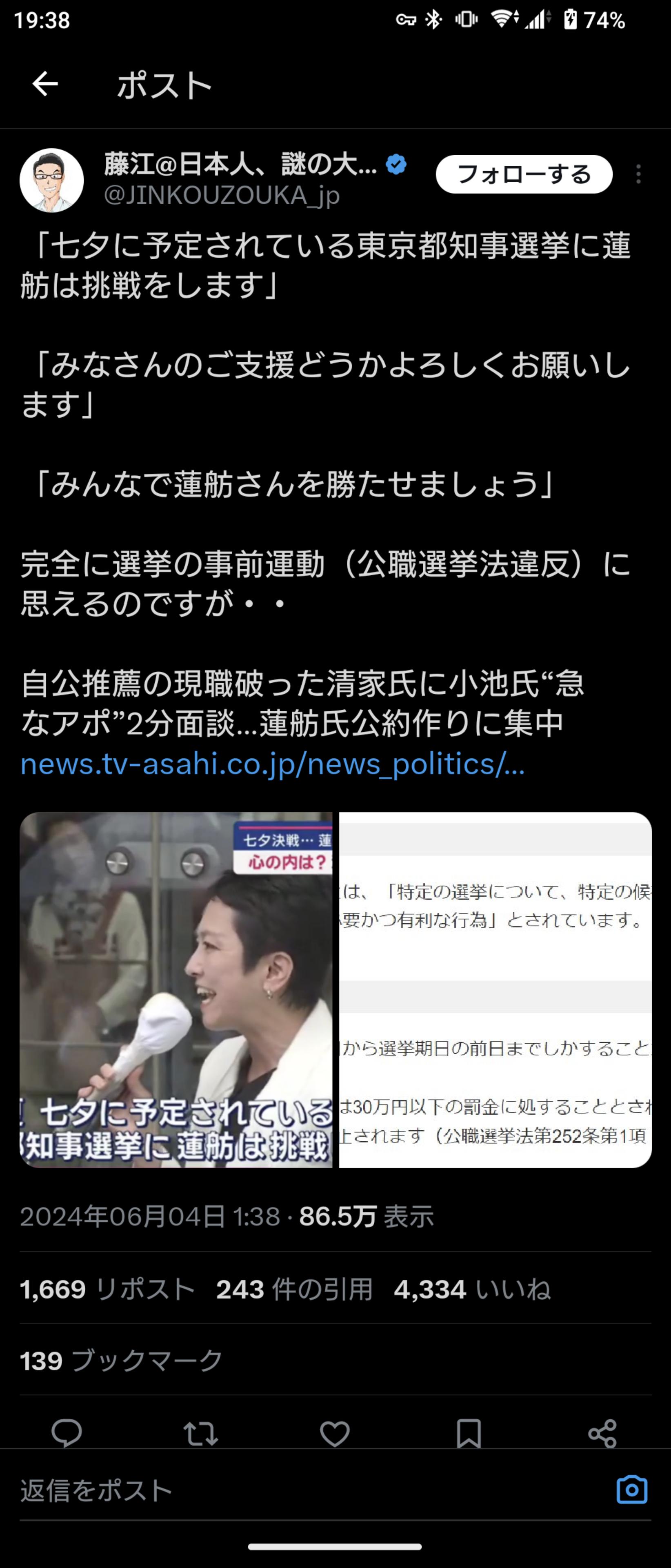 【悲報】蓮舫さん、始まる前から終わる 2024/6/5 速報 1: 公職選挙法違反ではとの指摘が相次ぐ — (@JINKOUZOUKA_jp) document.write(” + ”); 関連記事 document.write(” + ”); 続きを読む ——— Source: アルファルファモザイク 【悲報】蓮舫さん、始まる前から終わる