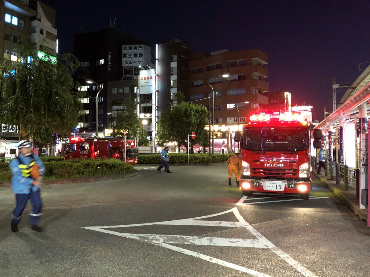 高円寺駅前に消防車5台とパトカーが次々と集結。