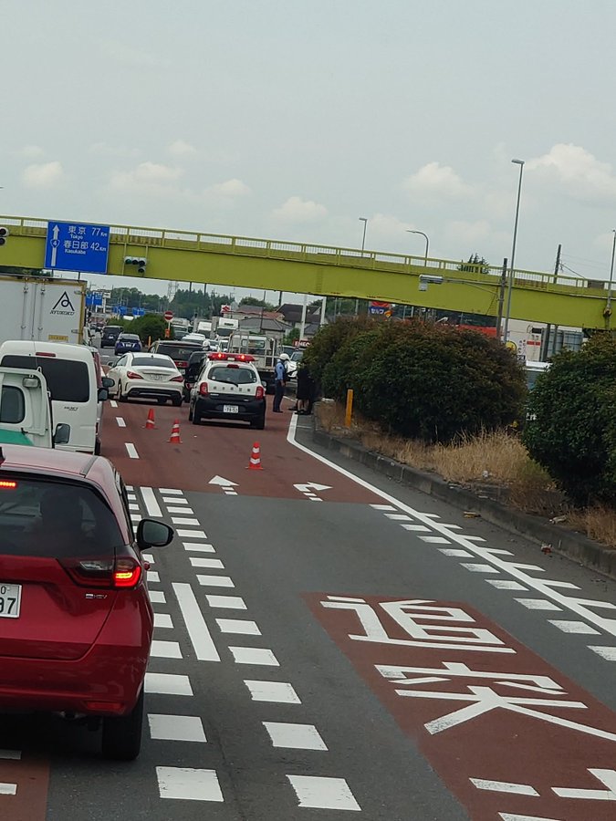 国道4号線下りの小山市出井交差点付近で4台の玉突き事故渋滞してます。ご注意下さい🙇🏻#小山市#事故