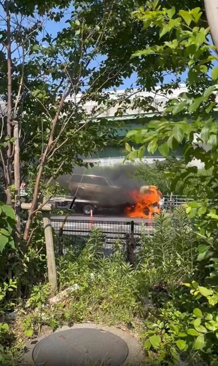 【現場の様子】#交通情報 名古屋市道 愛知県名古屋市港区 名古屋高速 船見出入口付近 積載車トラック燃える車両火災事故で一時通行止め渋滞6月7日 #名古屋 #火災