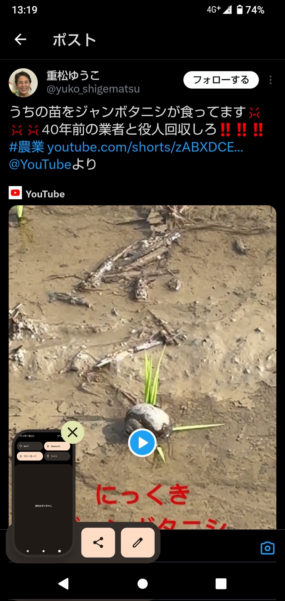 【地獄】ジャンボタニシ農法 無事死亡 2024/6/12 速報 1: https://www.youtube.com/watch?v=zABXDCE9JDg document.write(” + ”); 関連記事 document.write(” + ”); 続きを読む ——— Source: アルファルファモザイク 【地獄】ジャンボタニシ農法 無事死亡