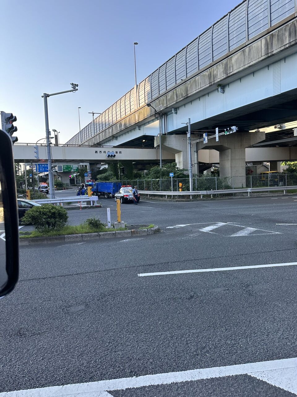 今日AM4時頃、葛西のトラックターミナル行く時に環七と357?湾岸線の交わる交差点で、2トンダンプ?と乗用車が事故してて…