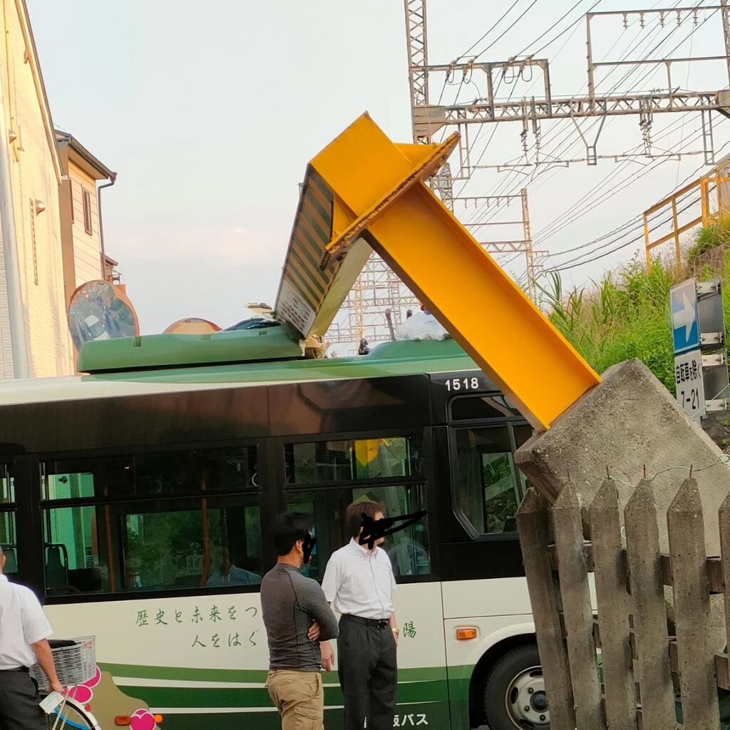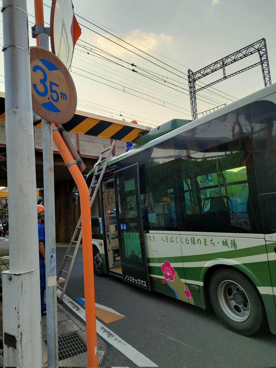 【現場の様子】#交通情報 府道富野荘八幡線 京都府城陽市枇杷庄 近鉄富野荘駅付近高架でバス衝突事故 一部通行止め6月14日 #京都 #城陽市
