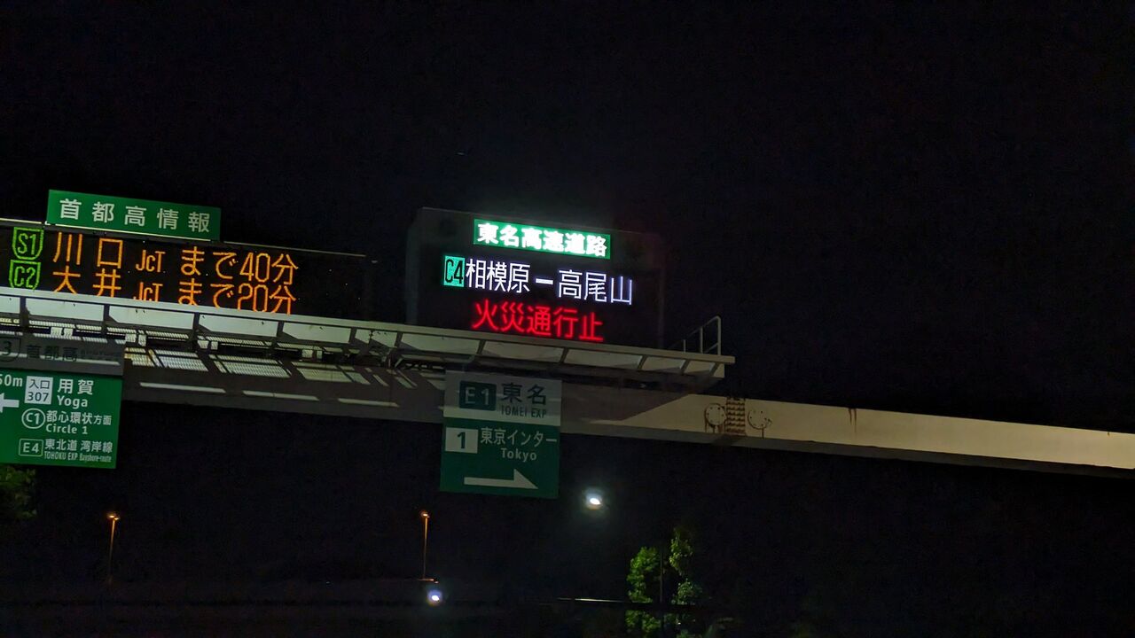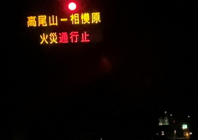圏央道>外回 相模原IC→高尾山IC火災のため通行止です。#通行止 #圏央道