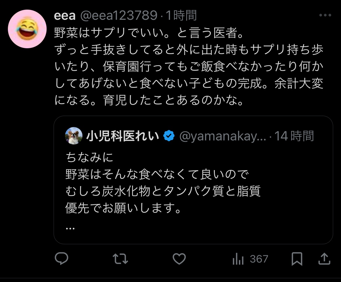 【地獄絵図】貧体ママ「子供にはお野菜!」 小児科医「いや肉食わせたほうがいいぞ」 貧ママ「ムキーッ!」 2024/6/15 速報 1: https://imgur.com/pkc1pEi.jpg — (@yamanakayuki777) document.write(” + ”); 関連記事 document.write(” + ”); 続きを読む ——— Source: アルファルファモザイク 【地獄絵図】貧体ママ「子供にはお野菜!」 小児科医「いや肉食わせたほうがいいぞ」 貧ママ「ムキーッ!」