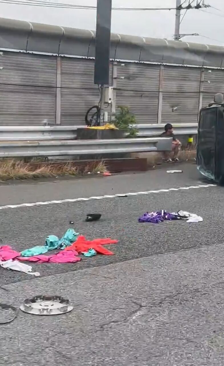 東名で横転したバカ。ものすごい迷惑かかってますよ、バーか。