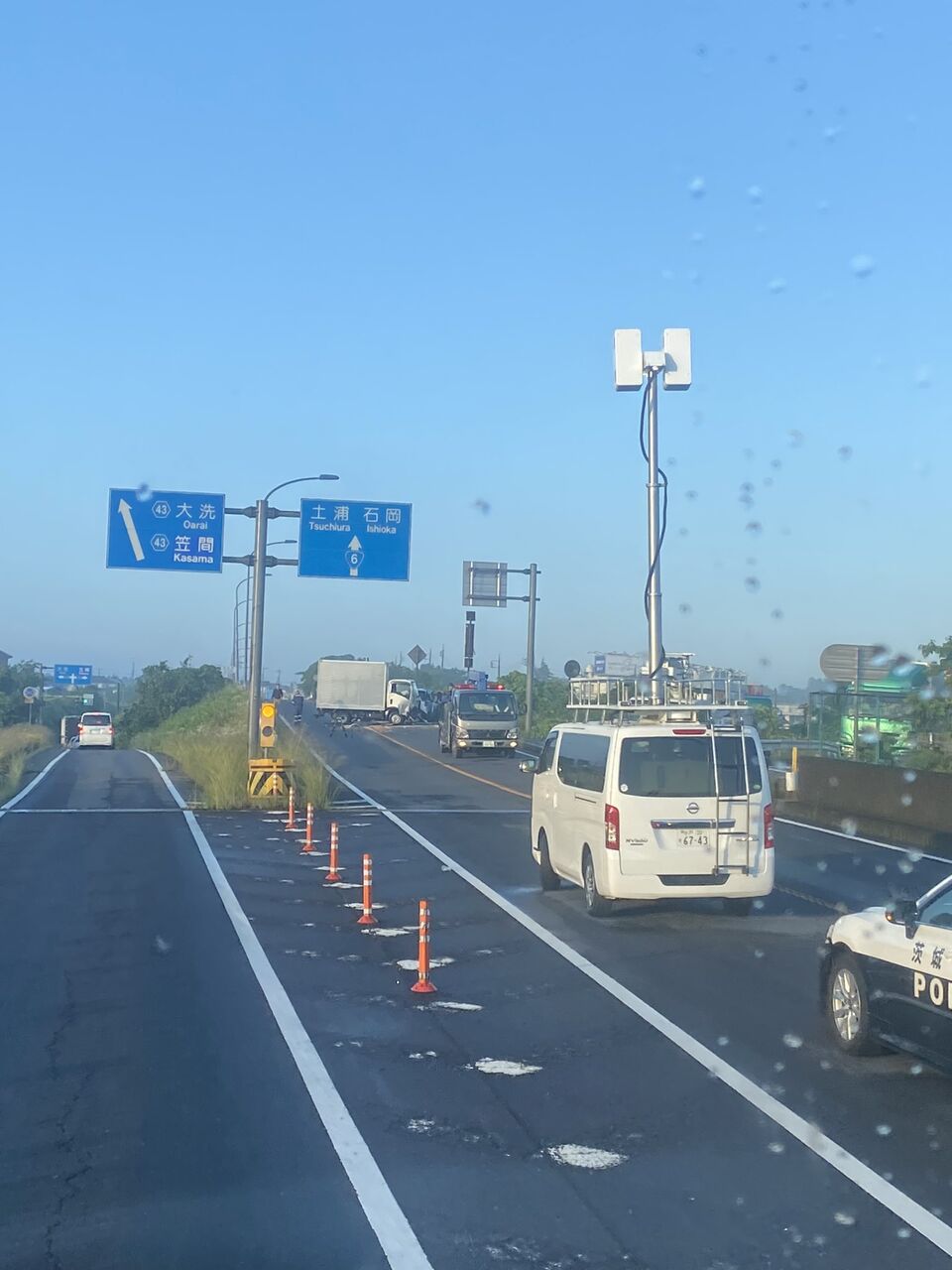 【現場の様子】#交通情報 #国道6号 茨城県東茨城郡茨城町奥谷付近 トラックと乗用車大破事故で上下線一時通行止め渋滞6月19日 #茨城