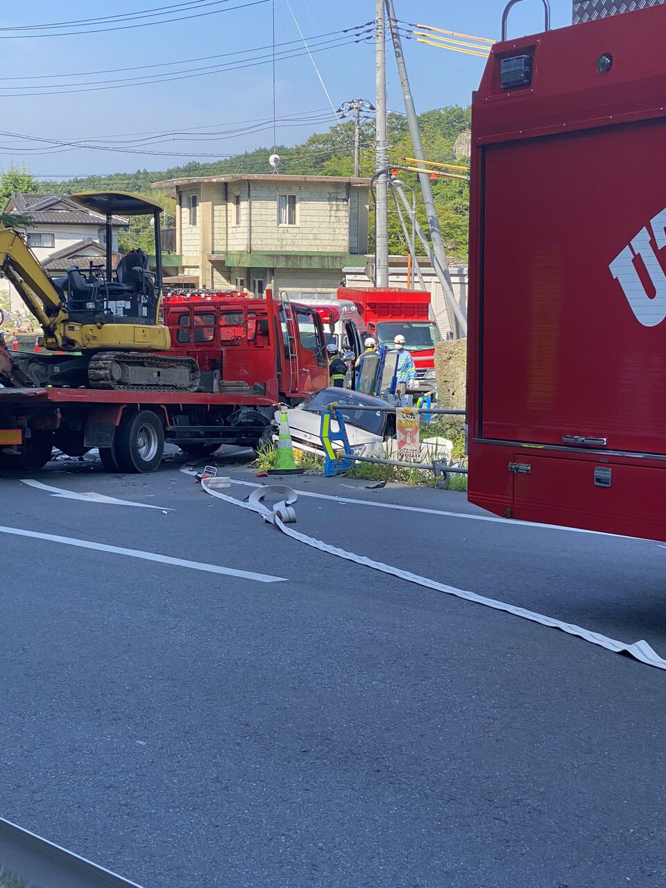 【現場の様子】#交通情報 大谷街道 栃木県宇都宮市大谷町大谷寺北西付近 ユンボ積載トラックと自動車衝突事故で一時通行止め規制6月20日 #栃木 #宇都宮 #大谷景観公園