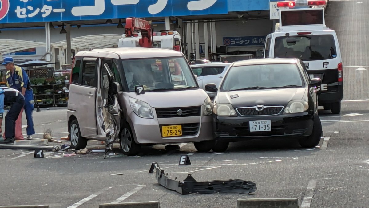 『テレビカメラがいっぱい来ていて見たら駐車場内で軽自動車が大破してた』