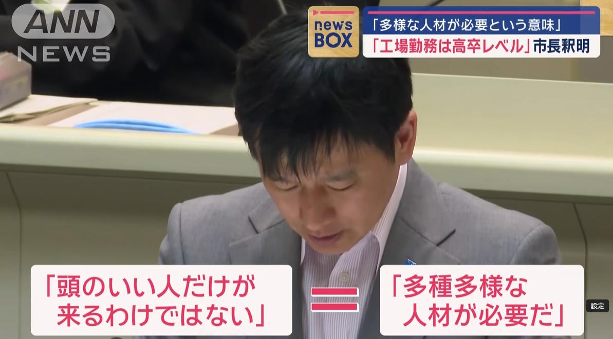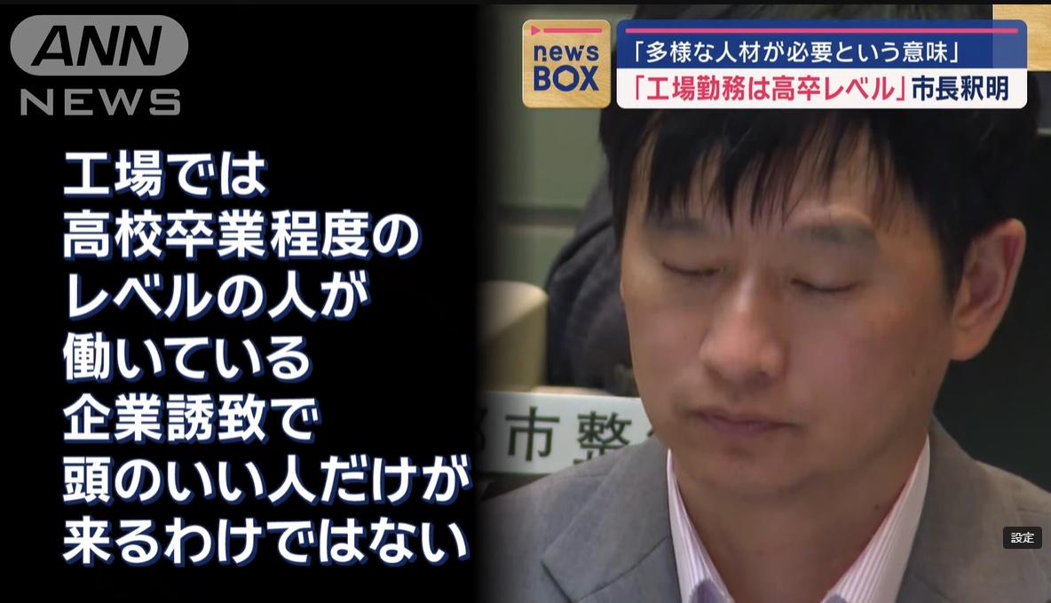 【地獄】「工場では高卒レベルが働いてる」市長、釈明会見で火に油を注いでしまうwwww 2024/6/22 速報 1: 高卒を完全に下に見ておられますね 釈明発言 https://www.youtube.com/watch?v=otlPKJugmsw document.write(” + ”); 関連記事 document.write(” + ”); 続きを読む ——— Source: アルファルファモザイク 【地獄】「工場では高卒レベルが働いてる」市長、釈明会見で火に油を注いでしまうwwww