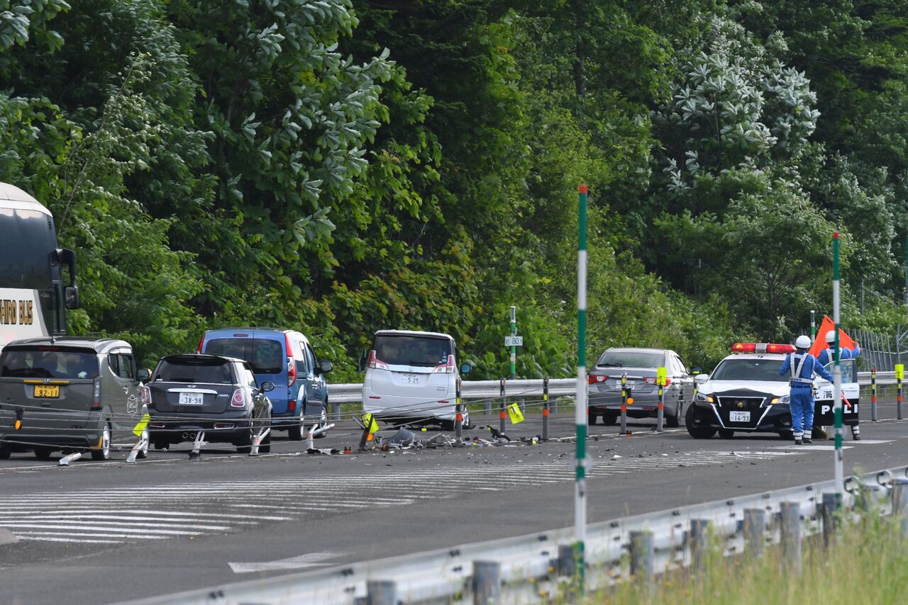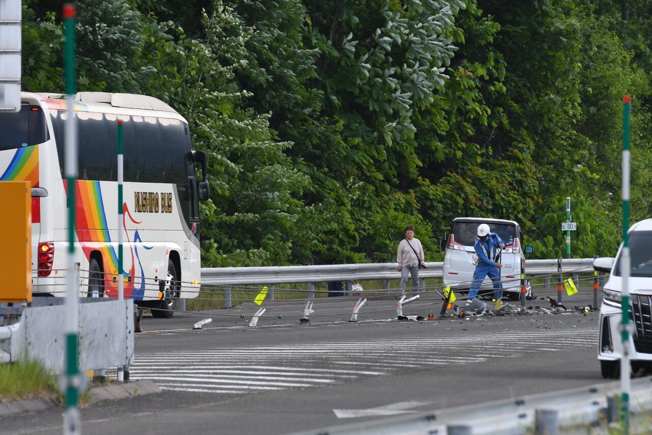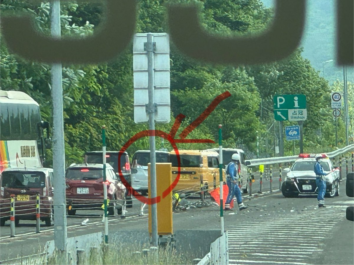 【現場の様子】#交通情報 #道東道 上り トマムIC~占冠IC付近 車両大破し破片広範囲に散乱 中央分離帯破壊事故で一時通行止め渋滞6月23日 #渋滞 #北海道 #占冠 #トマム