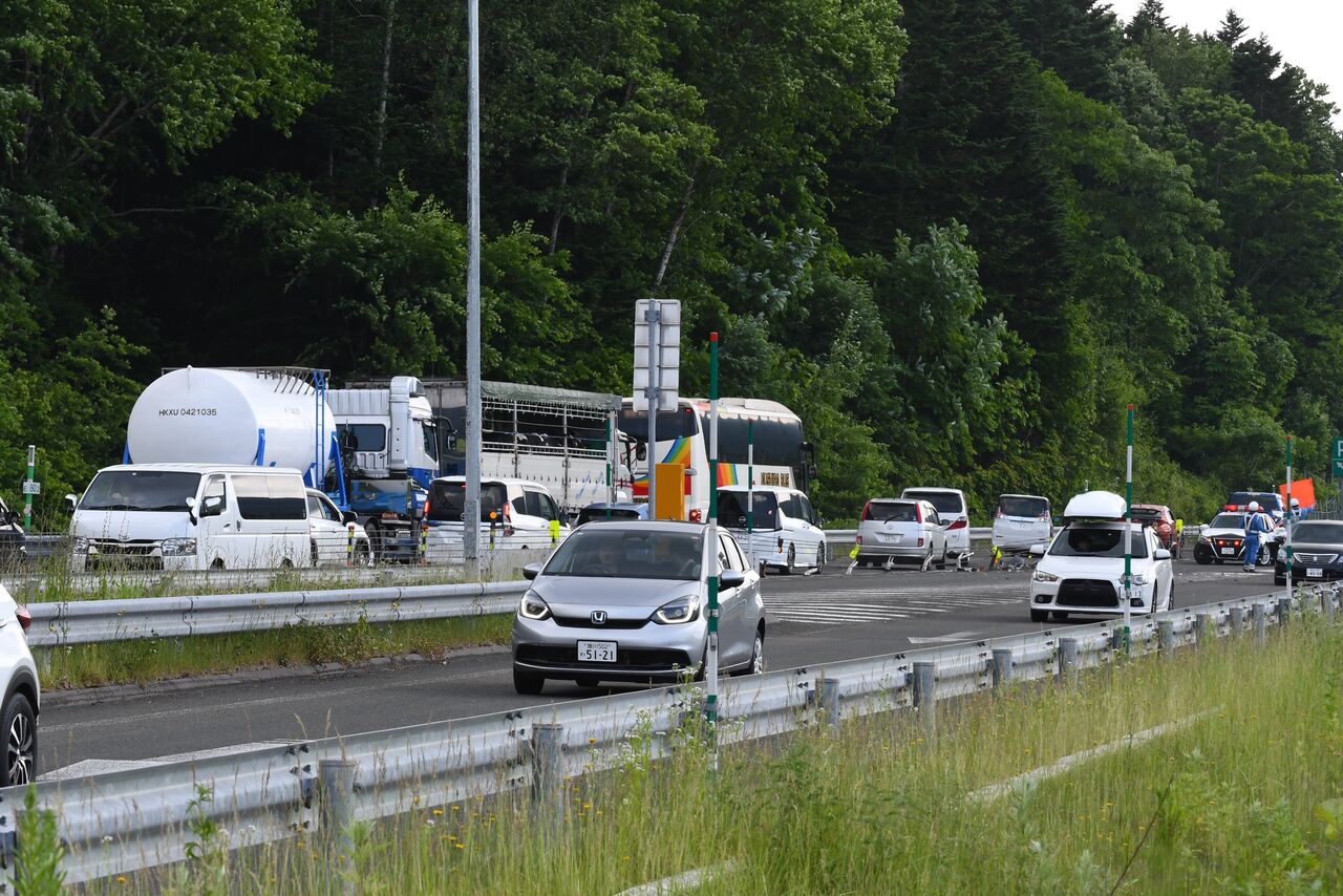 上りは占冠のバーキング付近で 事故車のバンパーを処理しているので、停車必要で 手前から渋滞始中— ゆかりん (@HappyGet75) June 23, 2024