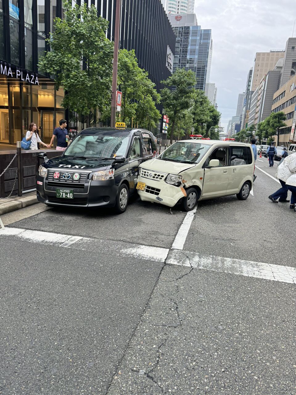 北浜駅前、ザ・キタハマま前で大事故⚡️大阪府警のパトカーまでボコボコ+窓もめっちゃ割れてる!何があった😱😱北浜住んで15年経つけど本当この交差点前での事故多い、、喧嘩してるのもめちゃくちゃ見るし、、呪われてるって😱😱💦 pic.twitter.com/IMOWPqeNCy