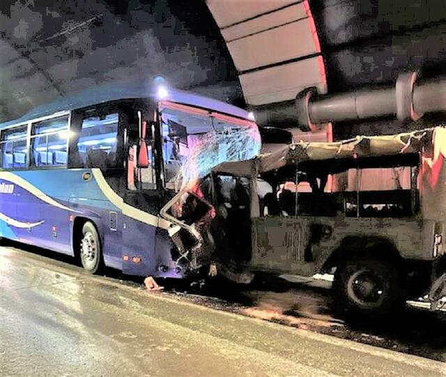 6月24日正午すぎ、北海道日高地方のむかわ町の国道274号線のモトツトンネル内で、自衛隊の車両と大型観光バスが正面衝突する事故がありました。