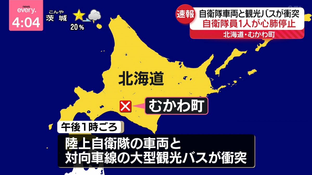むかわ町で大型バスと自衛隊の車が衝突 1人意識不明 7人けが https://t.co/9kc5eho11G #北海道NEWSWEB pic.twitter.com/ZRKKSHbTjy