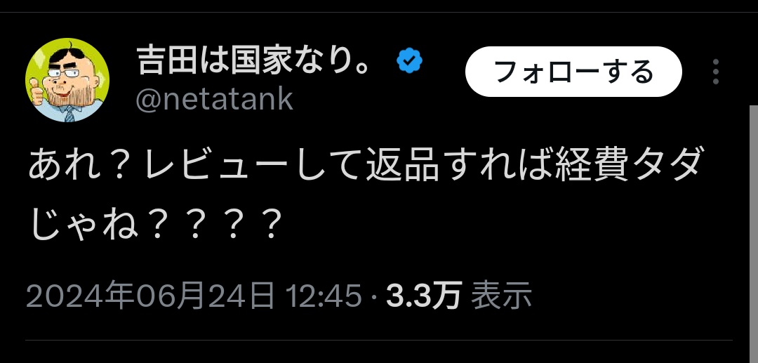 【緊急】吉田製作所、この世のバグに気付いてしまう。。。 2024/6/25 速報 1: 「20万円のノートPC買ってレビューして返品したわ😁」 ええんか? document.write(” + ”); 関連記事 document.write(” + ”); 続きを読む ——— Source: アルファルファモザイク 【緊急】吉田製作所、この世のバグに気付いてしまう。。。