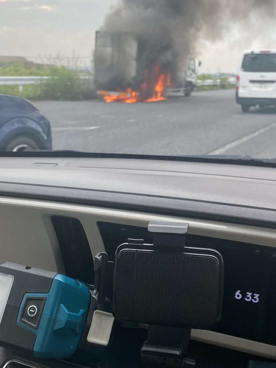 23号豊橋方面?走られる方まだトラック燃えてます。
