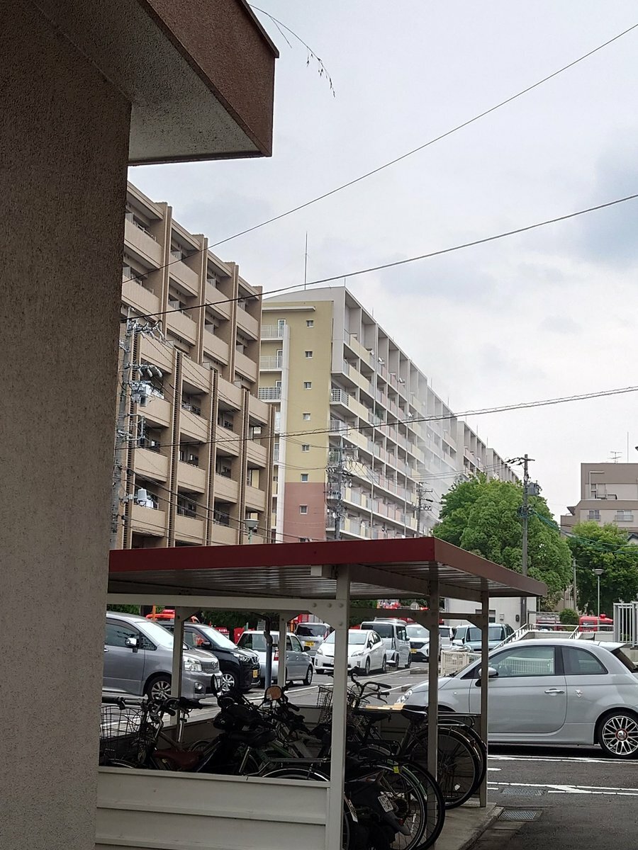 『砂田橋の団地で火事消防車すげー止まってる』
