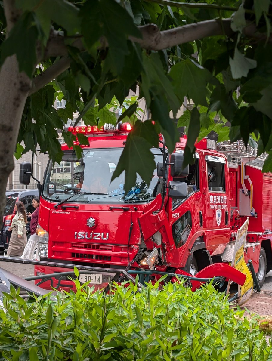 『ルノアールでお茶してたら目の前で消防車の事故。