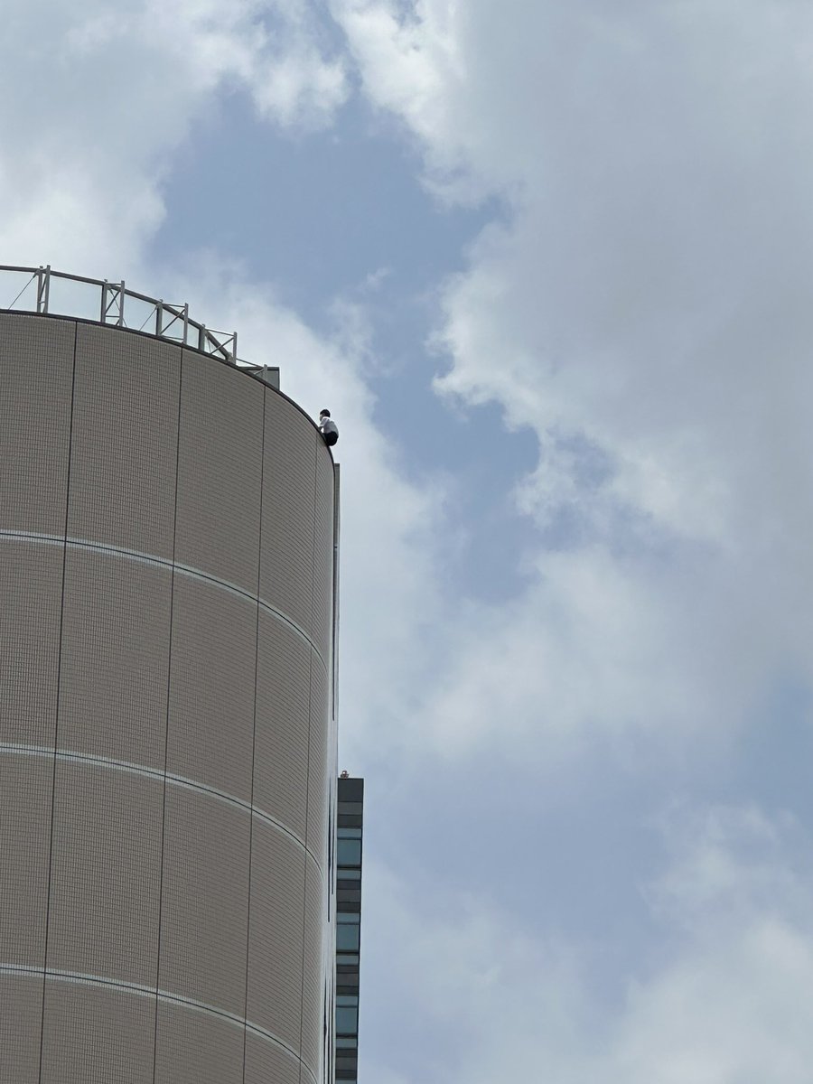 錦糸町の駅前、なんかえらいことになってたけど、ビル屋上から飛ぼうとしてる人がいるのねー