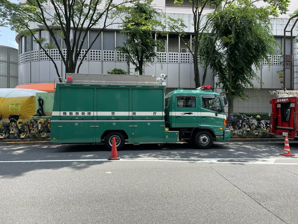 消防車3台、救急車1台、パトカーいっぱいでセーフティクッション出てるからなんだ??と思ったらこれよ。。今錦糸町駅前の北斎通り車両侵入不可なので通る人は気を付けてくれよな…
