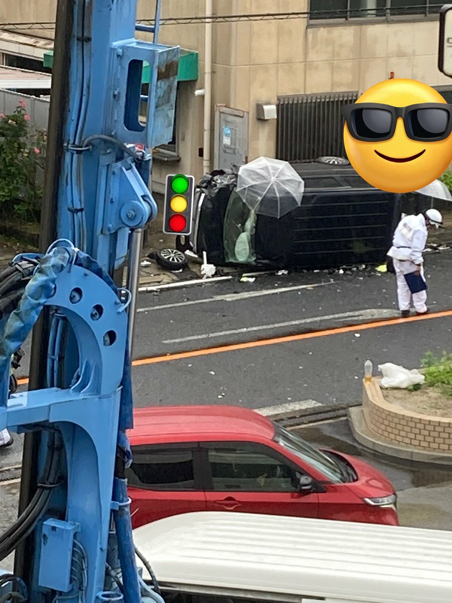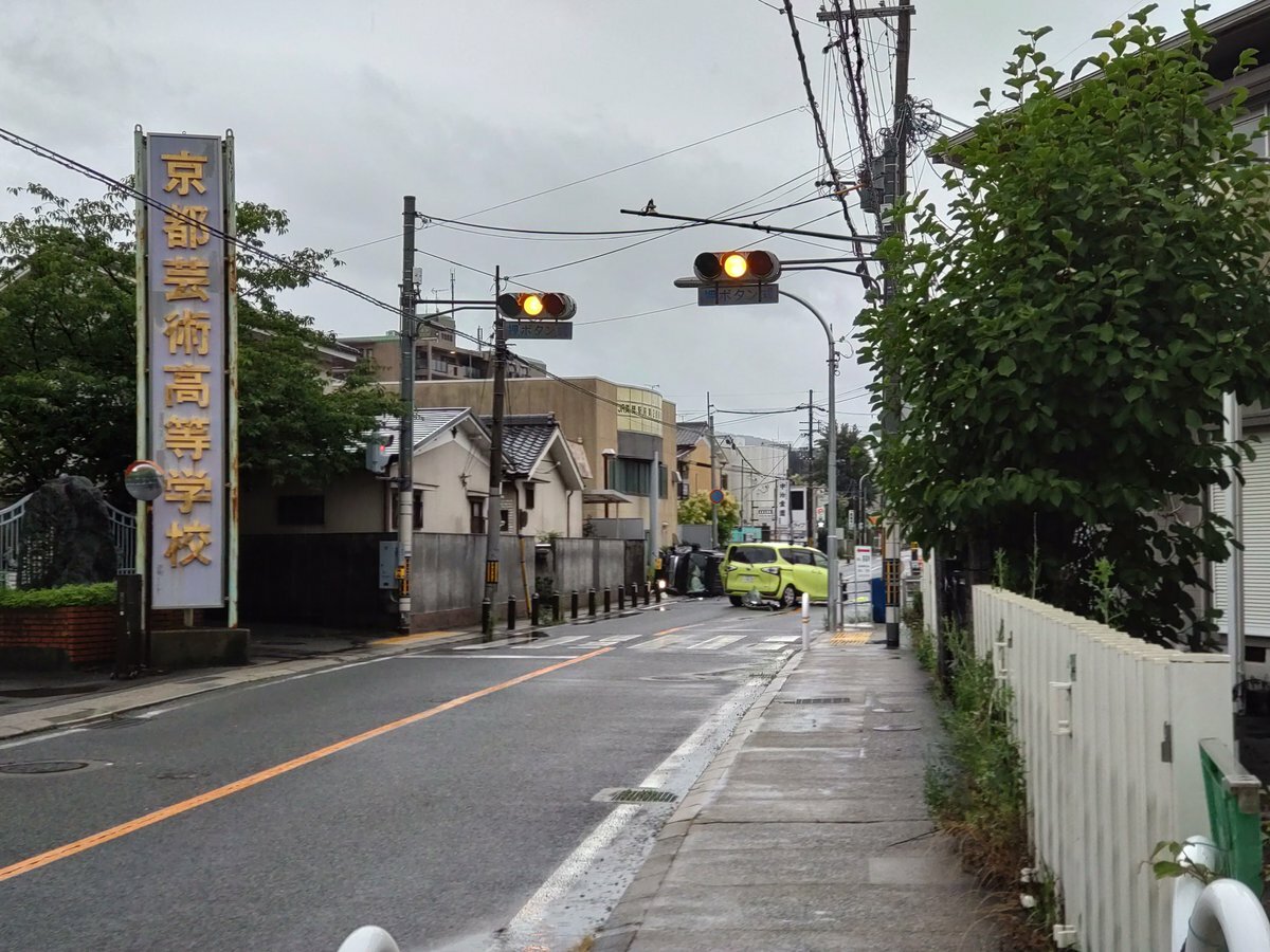 【現場の様子】#交通情報 府道7号線 京都府宇治市五ケ庄 #奈良線 黄檗駅付近 車両大破衝突横転事故で一時規制6月28日 #京都 #宇治
