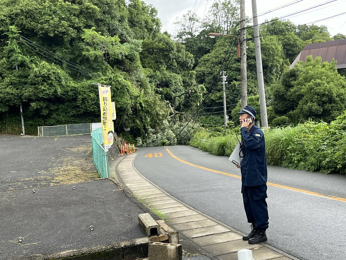 【現場の様子】#交通情報 県道237号線 奈良県生駒市門前町付近で倒木により通行止め 周辺一部停電6月28日 #奈良 #生駒 #停電