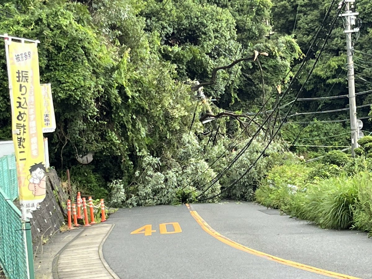生駒駅から宝山寺へ上る道が突然脇の木が倒れて通れなくなりました。電線も切れたらしく辺りは停電。 pic.twitter.com/YiGfBUrOZg