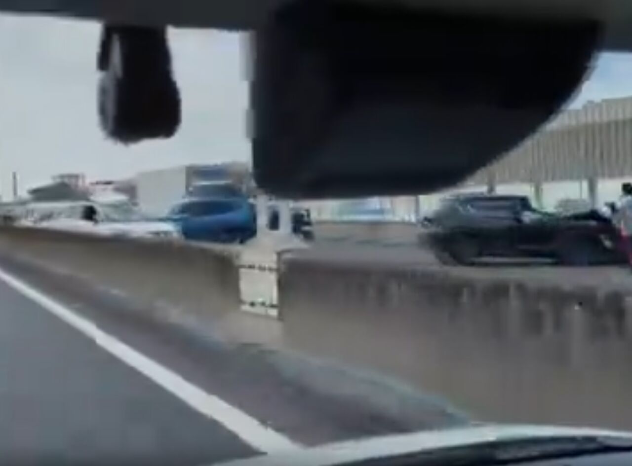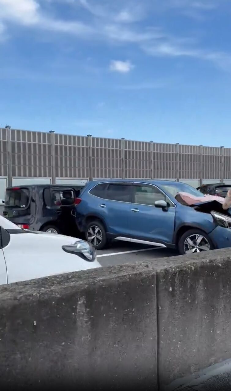 『阪和自動車道の境JCT手前で5,6台くらい絡む大きな事故が起きてる😥